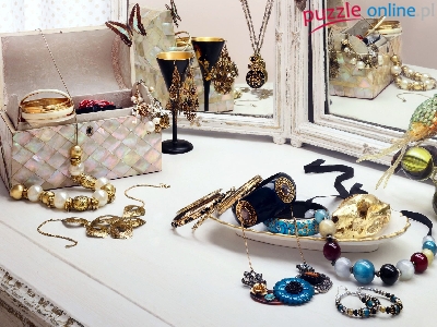 Biżuteria, Lustro, Naszyjniki, Kolczyki, Kuferek