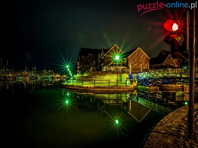 Blask, Budynki, Woda, Port, Lampa, Mostki