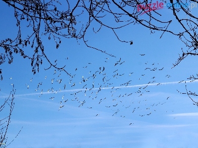 Puzzle Błękit, Ptaki, Niebo, Gałązki