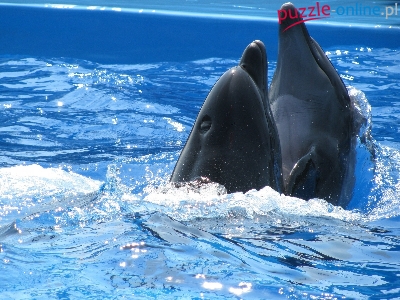 Puzzle Błękitna, Dwa, Delfiny, Woda