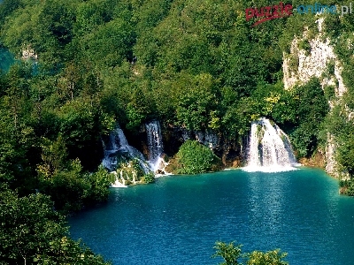 Puzzle Błękitna, Wodospad, Drzewa, Woda