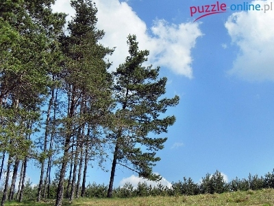 Puzzle Błękitne, Łąka, Drzewka, Niebo