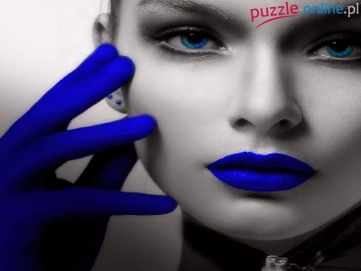 Błękitne, Rękawiczki, Twarz, Kobiety, Usta