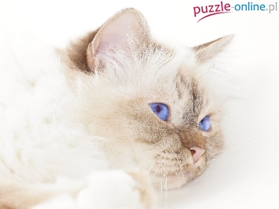 Puzzle Błękitne, Biały, Kot, Oczka