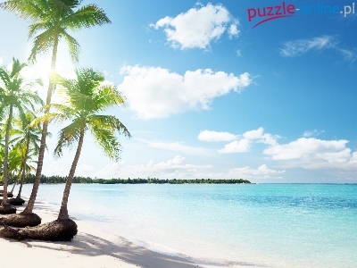 Puzzle Błękitne, Plaża, Morze, Niebo