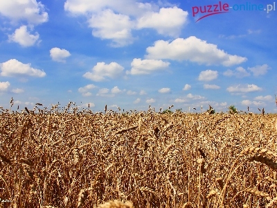 Błękitne, Chmury, Zboże, Pole, Niebo