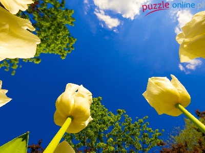 Puzzle Błękitne, Żółte, Tulipany, Niebo