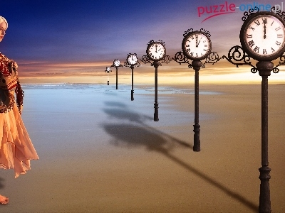 Puzzle Plaża, Blondynka, Zegary