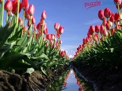 Puzzle Błoto, Tulipany, Pole, Rów