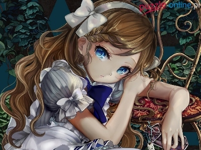 Krzesło, Bluszcz, Anime, Liście, Dziewczyna, Butelka, Manga