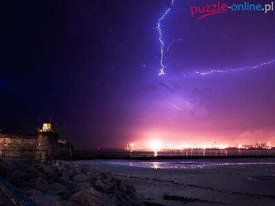 Puzzle Błyskawice, Noc, Burza, Niebo