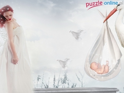 Bocian, Gołębie, Fantasy, Kobieta, Dziecko