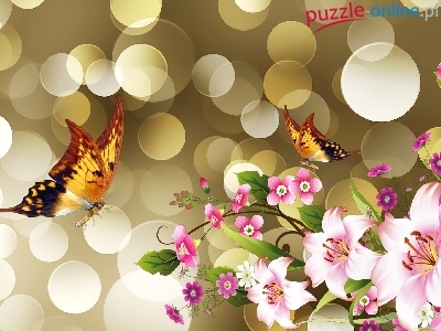Puzzle Bokeh, Kwiaty, Motyle, Art