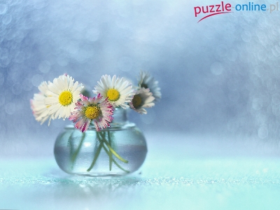 Puzzle Bokeh, Stokrotki, Wazonik, Dekoracja
