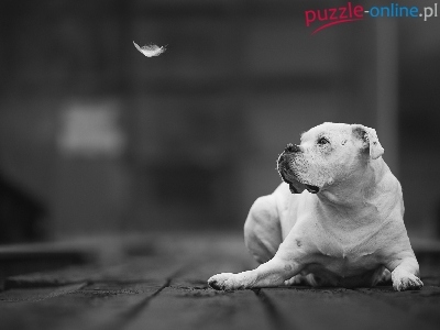 Puzzle Bokser, Pies, Biały, Piórko