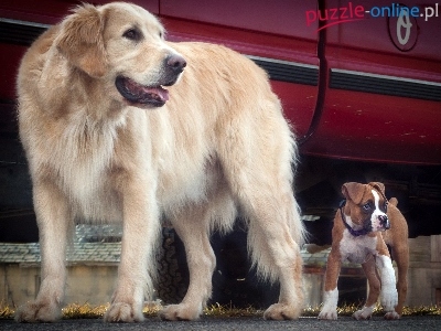 Puzzle Bokser, Dwa, Psy, Golden Retriever