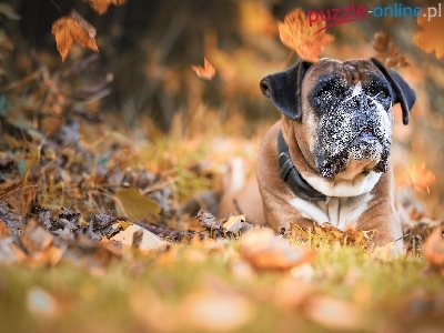 Puzzle Bokser, Leżący, Pies, Liście