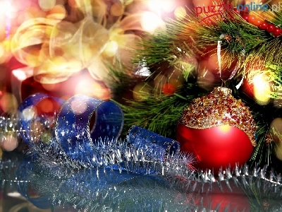 Puzzle Bombka, Gałązka, Świerku, Święta
