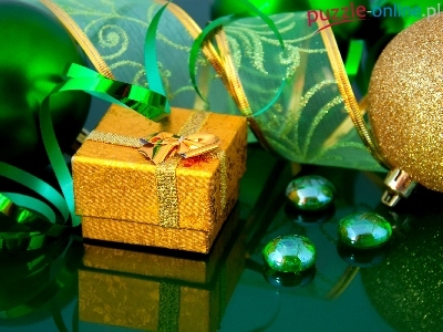 Bombka, Paczka, Wstążka, Złota, Złota, Zielona