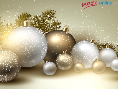 Puzzle Bombki, Złote, Białe, Gałązka
