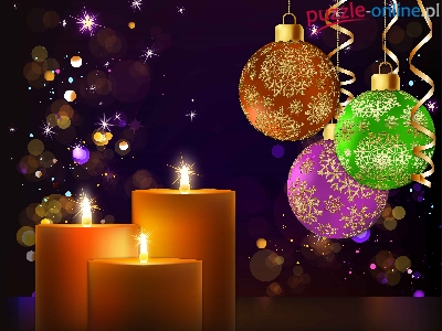 Puzzle Bombki, Boże Narodzenie, Dekoracja, Świeczki