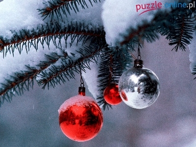 Puzzle Bombki, Ośnieżona, Gałąz, Świąteczne