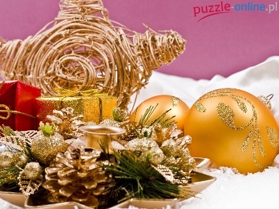 Puzzle Bombki, Boże Narodzenie, Kompozycja, Szyszki