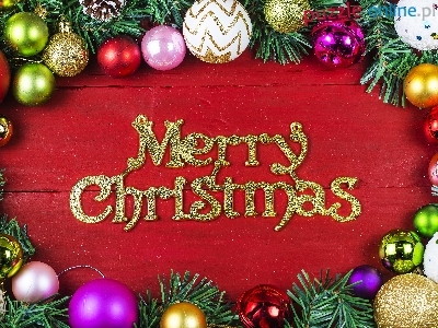 Napis, Bombki, Kompozycja, Boże Narodzenie, Merry Christmas