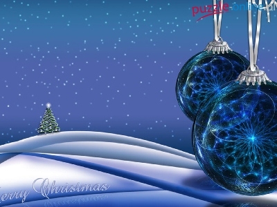 Puzzle Bombki, Dwie, Niebieskie, Choinka