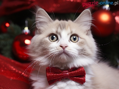 Czerwona, Kot, Oczy, Bombki, Duże, Pyszczek, Muszka
