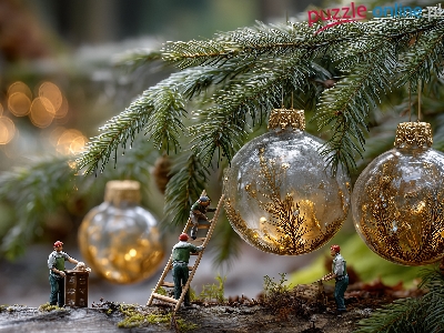 Boże Narodzenie, Świerk, Bombki, Grafika AI, Ludziki