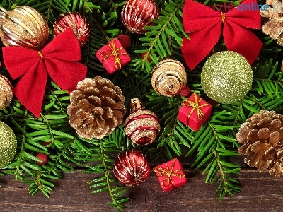 Kompozycja, Bombki, Deski, Kokardki, Boże Narodzenie, Gałązki, Szyszki