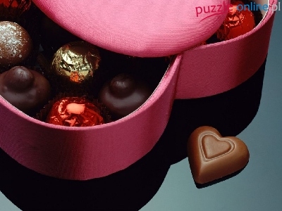 Puzzle Walentynki, Bombonierka w kształcie serduszka z cukierkami