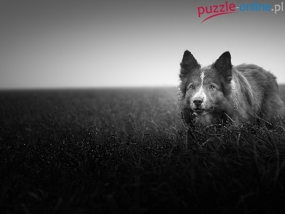 Puzzle Border collie, Łąka, Trawa, Czarno-białe