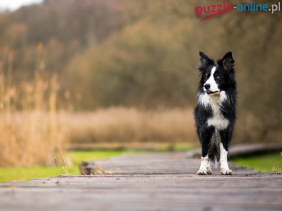 Puzzle Border collie, Pies, Biało-czarny, Kładka