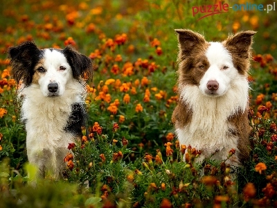 Border collie, Kwiaty, Psy, Kundelek, Łąka
