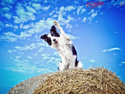 Niebo, Border Collie, Bela, Pies, Łapa, Siano