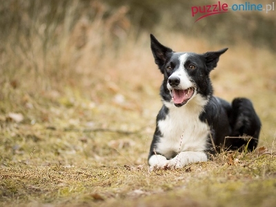 Puzzle Border Collie, Pies, Trawa