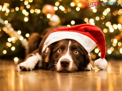 Border collie, Mikołaja, Leżący, Pies, Czapka