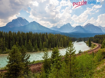 Chmury, Park Narodowy Banff, Alberta, Kanada, Drzewa, Rzeka, Bow River, Tory, Las, Góry Skaliste