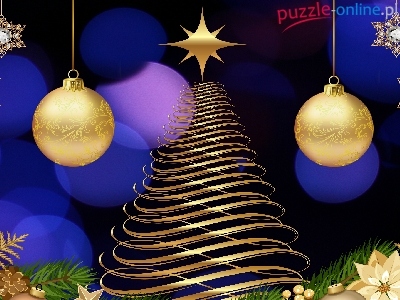 Puzzle Boże Narodzenie, Bombki, Choinka, Grafika