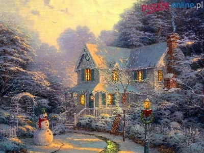 Boże, Bałwan, Obraz, Zima, Dom, Narodzenie