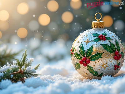 Puzzle Gałązki, Boże Narodzenie, Bombka, Śnieg