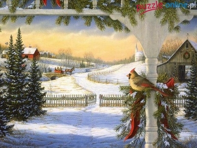 Boże, Widoczek, Malarstwo, Zima, Ptaki, Narodzenie