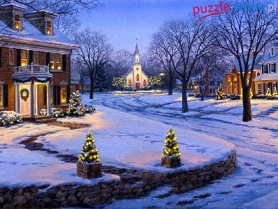 Boże, Ulica, Malarstwo, Domy, Zima, Narodzenie