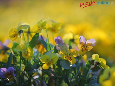 Puzzle Bratki, Żółte, Fioletowe, Kwiaty