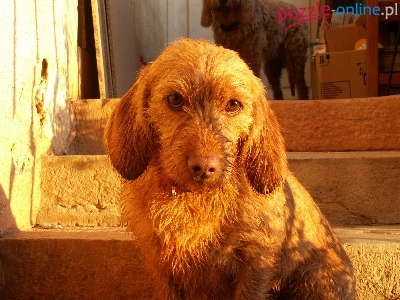 Basset Fauve de Bretagne Basset bretoński, woda skulony, Basset Fauve de Bretagne Basset Fauve de Bretagne, trawa Basset bretoński, schody