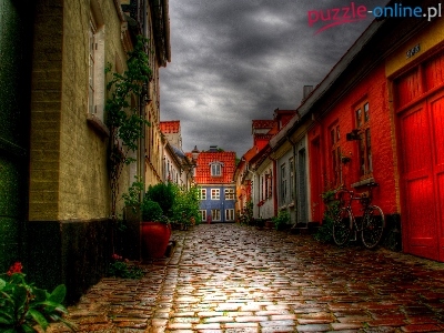 Brukowa, Chmury, Domy, Ciemne, Kostka, Kolorowe
