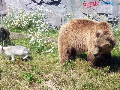 Puzzle Brunatny, Lis, Niedźwiedź, Łąka