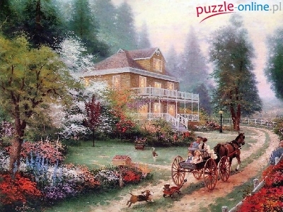 Dom, Bryczka, Droga, Thomas Kinkade, Obraz